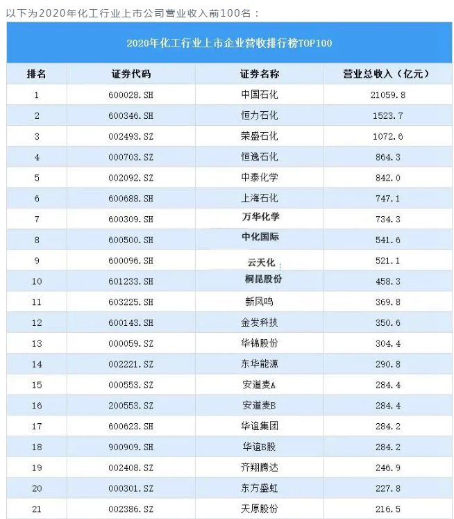 化工企業(yè)收入百強 | 中國石化、恒力石化、榮盛石化破千億元!